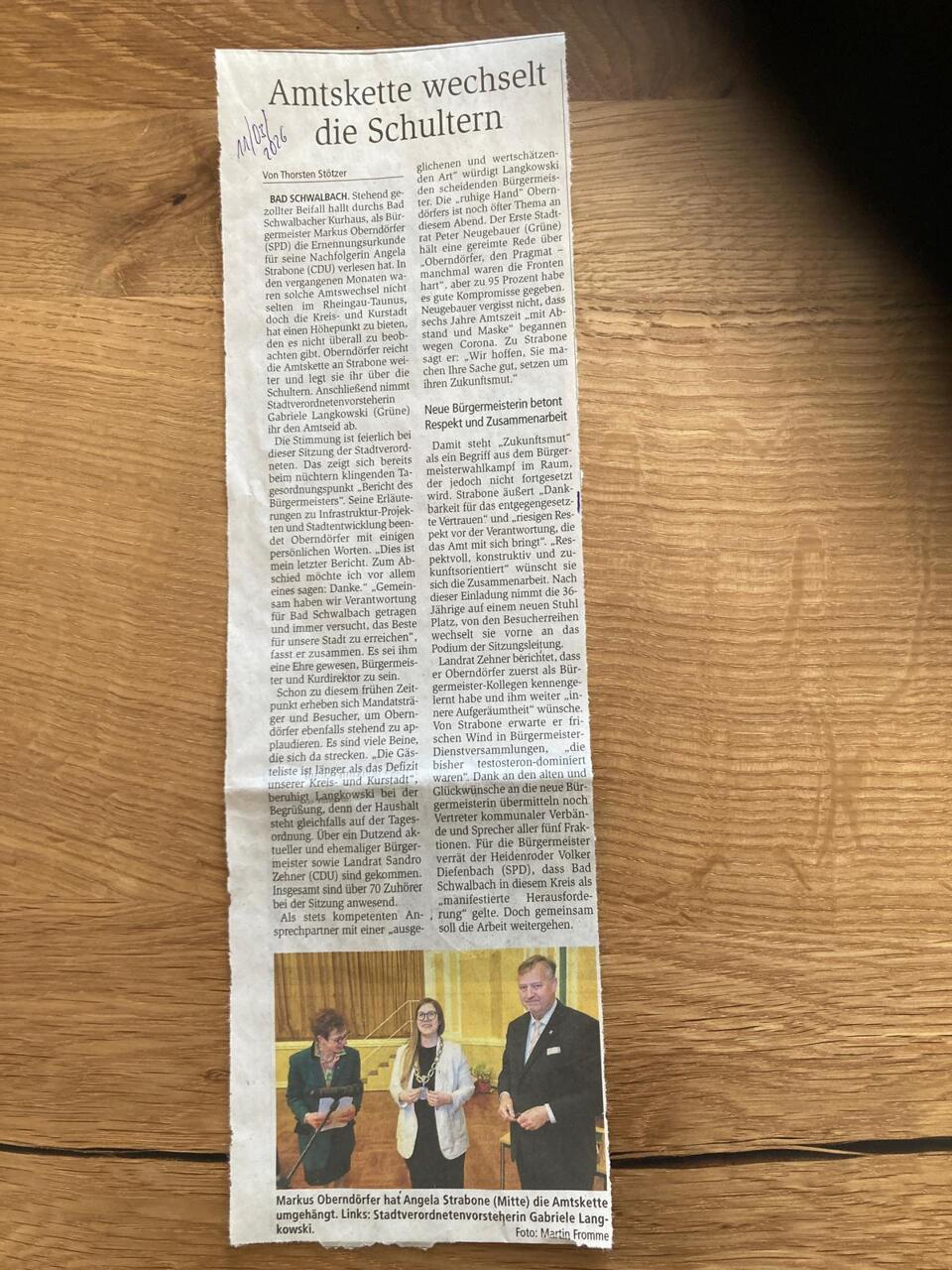 La ville de Bad Schwalbach a récemment connu un moment important de sa vie municipale avec le passage de relais à la tête de la commune.